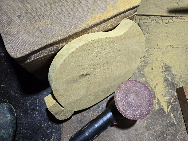황느티 과반 제작은 #40 사포로 측면을 샌딩 작업을 하고서